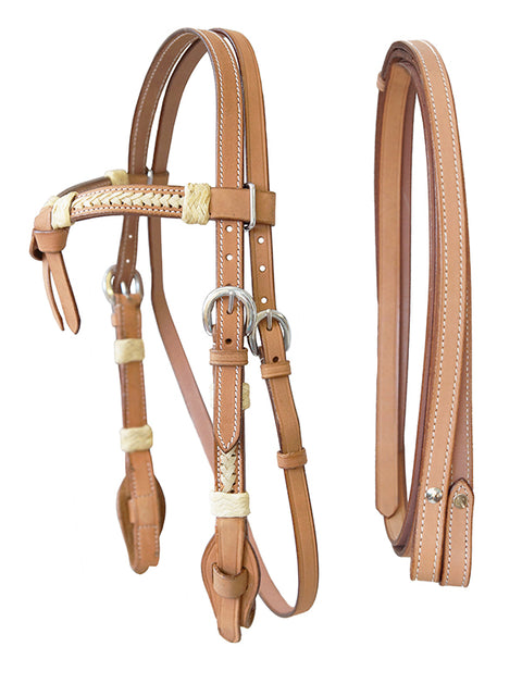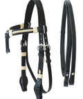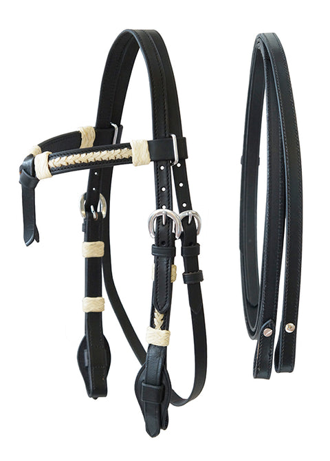 - mit Rohhautverzierungen an Stirnriemen und Backenstücken